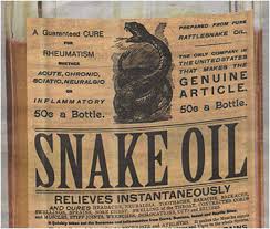 Interestingly enough, many of these “remedies” like Snake Oil were loosely based on Native American herbal lore. Snake Oil, for instance, was based on a widespread Plains Indian remedy that involved soaking the rattles of a rattlesnake in pregnant women’s urine, and was used in difficult childbirth for which it was said to be very effective. It was also used to heal wounds and treat painful joints. Along came the White Man and, seeing or hearing of this miraculous cure, thought – “Hmmmm, I could bottle that and make a fortune”. And so he did. And, of course, thousands of women and children died in childbirth anyway. Oh well – news didn’t travel as fast as it does today, and the Snake Oil salesman was off to the next town before suffering any consequences.