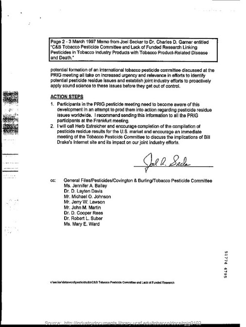 It took me 20+ years after this memoto get the hard data – how’s this for “proactively applying sound science”? Does it look like the industry pesticide committee ever did anything but perhaps meet and decide they had enough regulators, scientists and politicians in their pocket that they didn’t have to worry about it “getting out of control”.