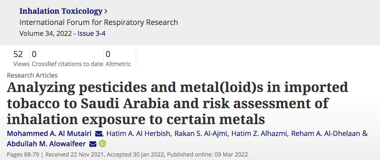 But the shades have been lifted, Now for only the second time since the mid-1970s, and totally confirming my original data, somebody ‘Official” has tested off-the-shelf cigarettes for pesticides. New 2022 Saudi government research shows how on target my 2018 “Smoke No Evil” data was in identifying 27 pesticide contaminants in 5 brands of cigarettes, but it also shows how very wrong I was to dismiss the role of heavy metals in the genesis of the many kinds of cancer that we know occur at high rates in smokers of tobacco cartel products.